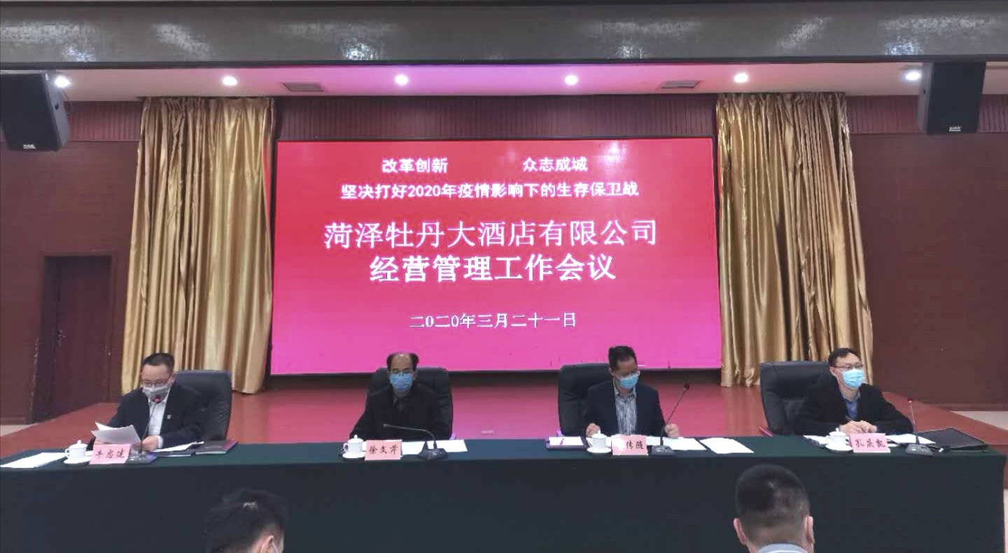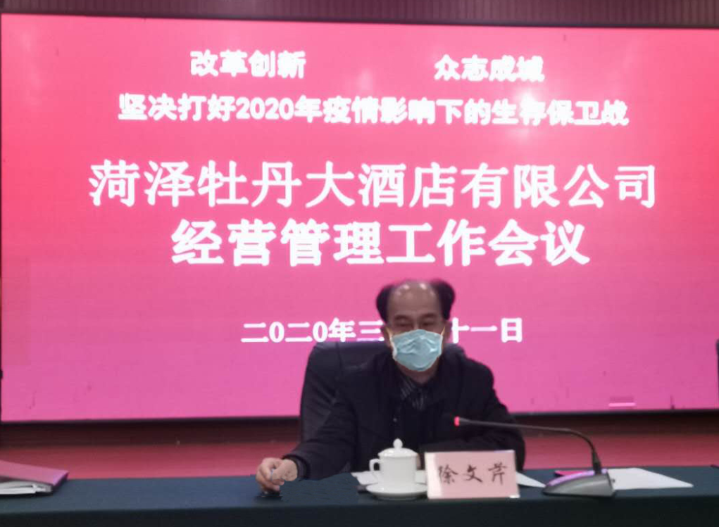 2020年3月21日上午,牡丹大酒店有限公司在酒店一樓多功能廳召開經(jīng)營(yíng)管理工作推進(jìn)會(huì),集團(tuán)公司黨委書記、董事長(zhǎng)徐文芹,黨委委員、副總經(jīng)理祝傳隨,黨委會(huì)秘書、黨群工作部副部長(zhǎng)孔慶凱等領(lǐng)導(dǎo),酒店主管以上管理人員參加了會(huì)議。