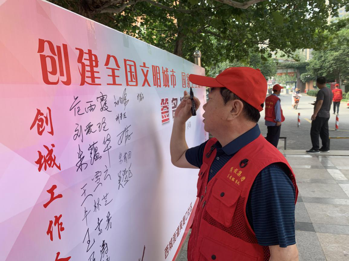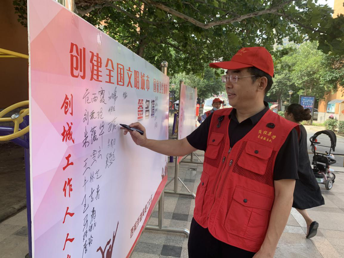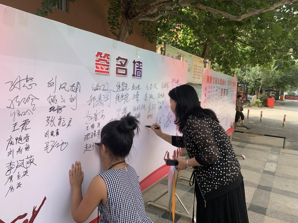 活動現(xiàn)場設(shè)置“創(chuàng)建全國文明城市和國家衛(wèi)生城市”主題的簽名墻。居民紛紛在簽名墻上寫下姓名,鄭重承諾為爭做文明市民做表率,以實(shí)際行動傳遞心聲,助力創(chuàng)城攻堅。