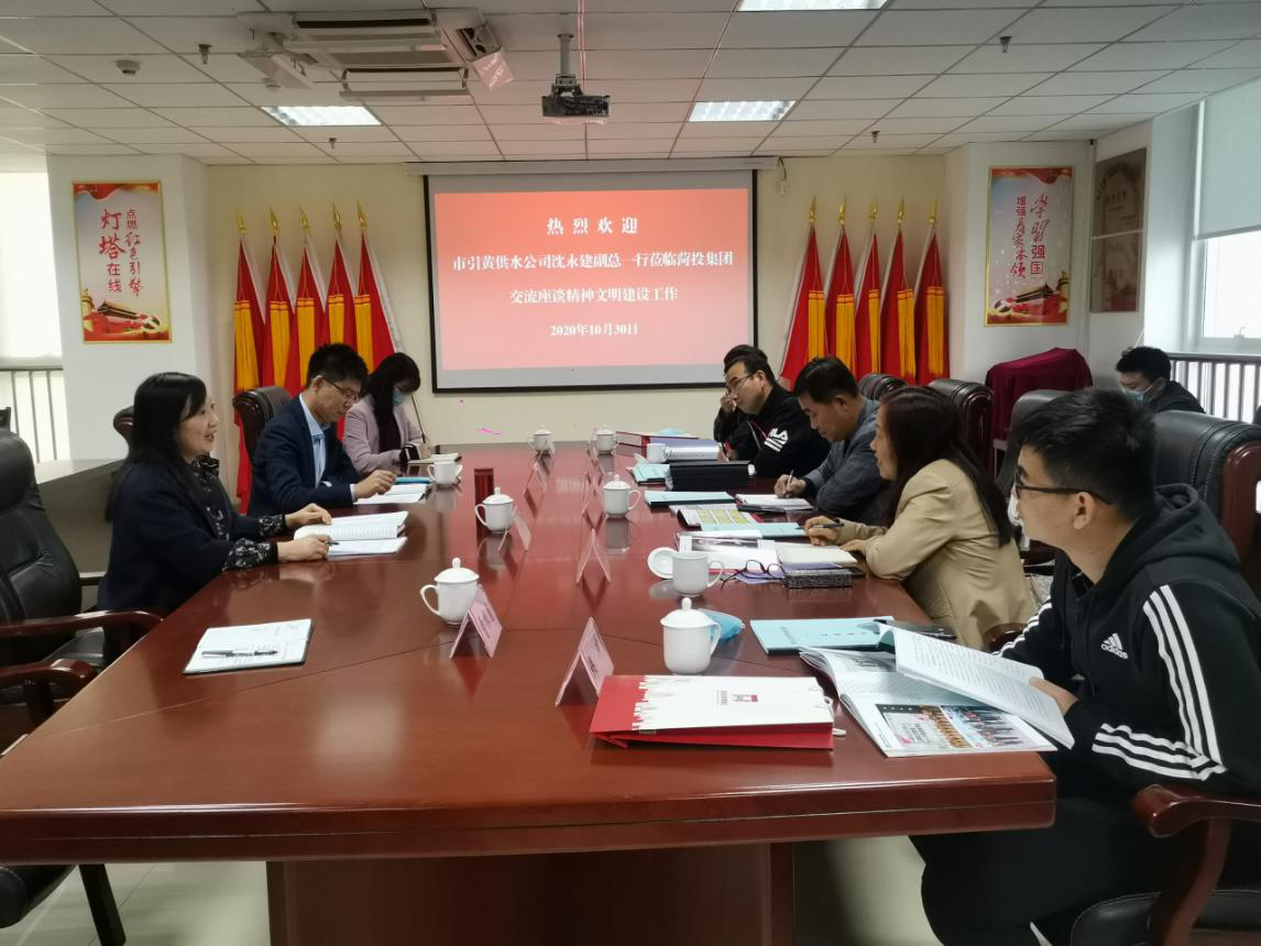 為做好公司精神文明建設(shè)工作,進(jìn)一步推進(jìn)文明單位創(chuàng)建工作水平,10月30日下午,市引黃供水公司沈永健副總一行5人到菏投集團(tuán)交流座談精神文明建設(shè)工作。菏投集團(tuán)總經(jīng)濟(jì)師、文明單位創(chuàng)建和企業(yè)文化建設(shè)工作領(lǐng)導(dǎo)小組副組長、文明辦主任王慶英,公司董事會辦公室主任、綜合管理部部長、文明辦副主任晁磊和文明辦有關(guān)同志陪同。