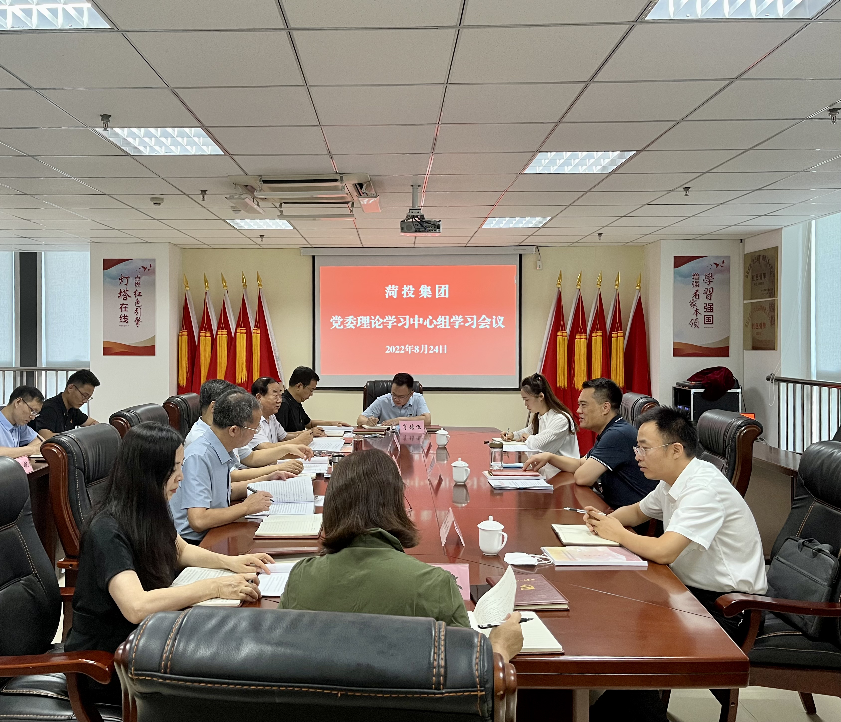 根據(jù)黨委理論學(xué)習(xí)中心組2022年學(xué)習(xí)計劃安排,8月24日,菏投集團(tuán)在第二會議室召開2022年第9次黨委理論學(xué)習(xí)中心組學(xué)習(xí)會議,市國資系統(tǒng)黨委(黨組)理論中心組學(xué)習(xí)列席旁聽工作三組董效占一行到會旁聽指導(dǎo),公司黨委書記、董事長丁萬國主持會議并講話,公司黨委理論學(xué)習(xí)中心組全體成員參加會議,學(xué)習(xí)秘書、黨群工作部有關(guān)同志列席會議。