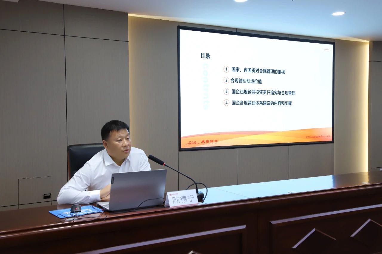 為持續(xù)推進(jìn)依法治企、合規(guī)管理工作,防范化解合規(guī)風(fēng)險(xiǎn),提升風(fēng)險(xiǎn)防控能力和法務(wù)管理水平,克服“懂業(yè)務(wù)、輕法務(wù)”的理念,10月19日,菏澤投資集團(tuán)邀請山東康橋(淄博)律師事務(wù)所陳德寧律師進(jìn)行專題授課。公司合署辦公機(jī)關(guān)全體,權(quán)屬企業(yè)副總級以上、財(cái)務(wù)負(fù)責(zé)人、綜合管理部部長及法務(wù)專員參加。