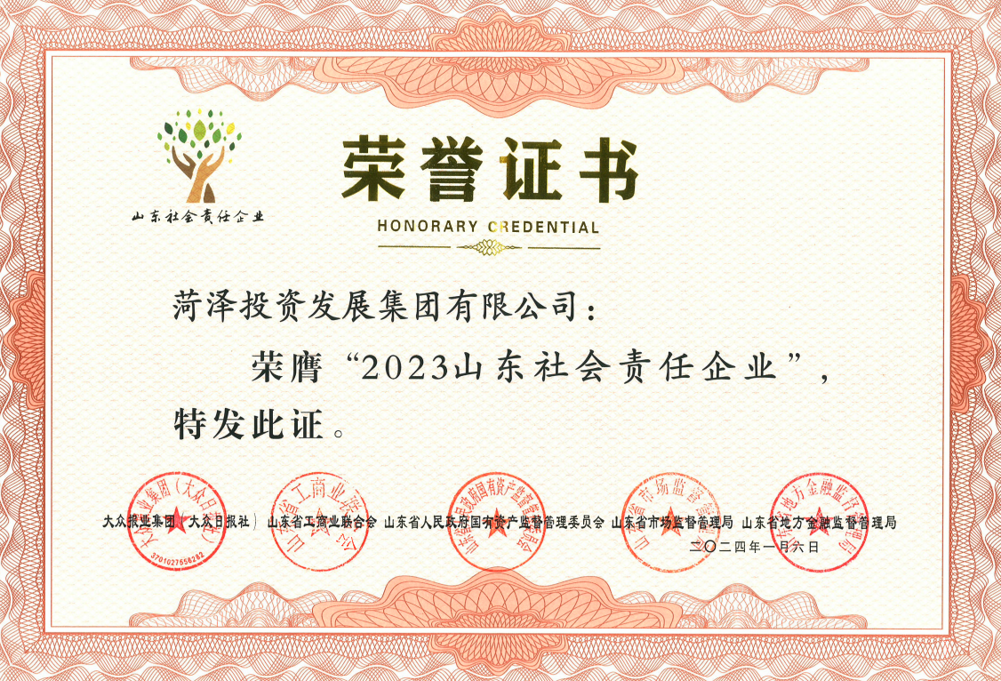 【彰顯新時(shí)代責(zé)任國(guó)企新作為】菏澤投資集團(tuán)蟬聯(lián)“2023山東社會(huì)責(zé)任企業(yè)”
