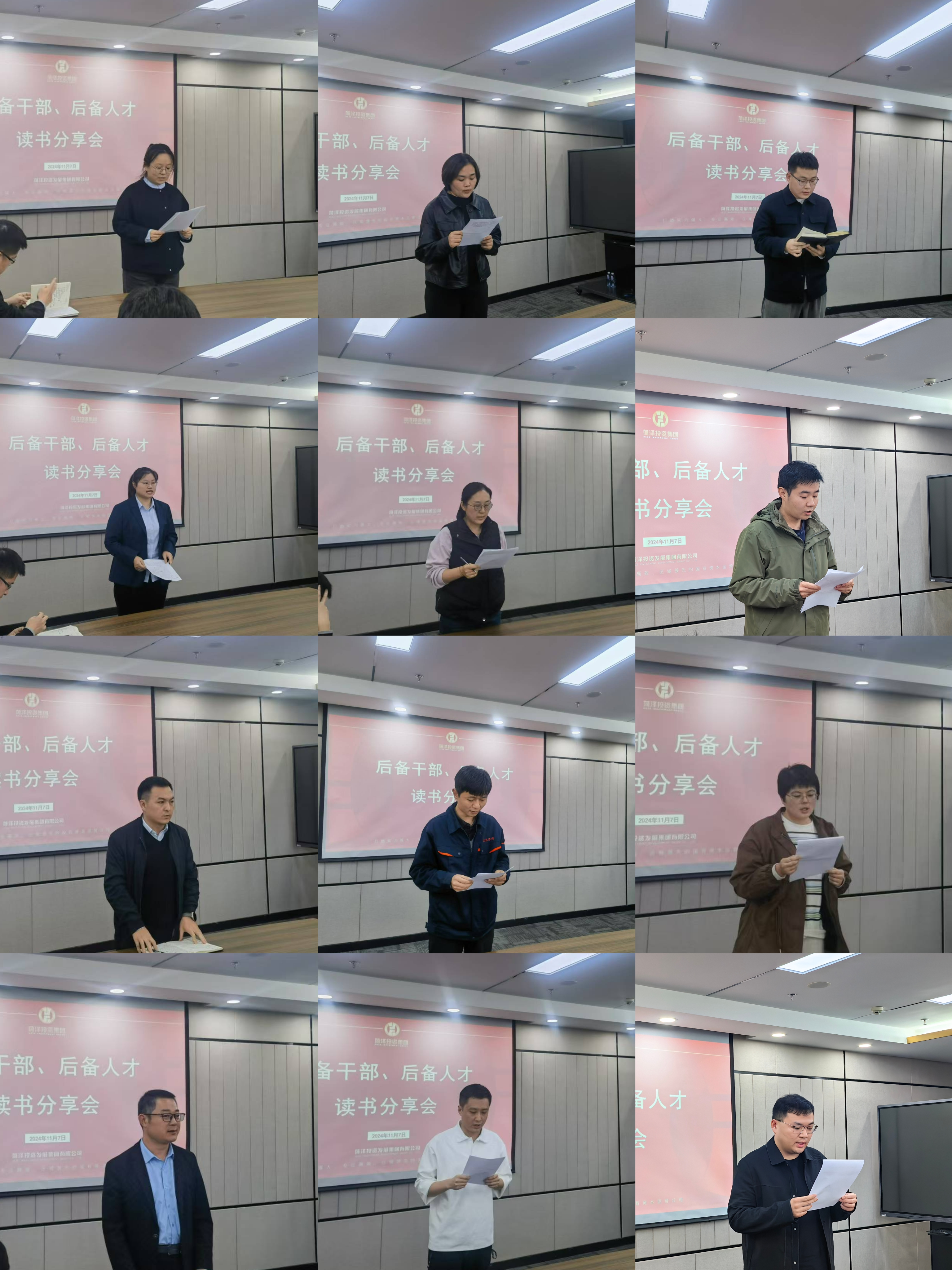 前期,集團(tuán)黨委為全體后備干部、后備人才舉行了贈(zèng)書(shū)儀式,選定《21天成為管理高手》《將才:如何成為領(lǐng)軍人物》2本書(shū)籍供大家學(xué)習(xí)。通過(guò)近兩個(gè)月的閱讀學(xué)習(xí),大家的思想得到了深刻啟發(fā)。在分享會(huì)上,集團(tuán)35名后備干部、后備人才依次走上臺(tái)前分享讀書(shū)心得,結(jié)合自身實(shí)際工作從不同的角度講述獨(dú)特見(jiàn)解,暢談自己讀書(shū)的所思所想、所感所悟。大家敘說(shuō)工作中的小故事,闡述觀點(diǎn),暢談體會(huì),真誠(chéng)交流,陣陣書(shū)香“浸潤(rùn)”了大家的心田,展現(xiàn)出集團(tuán)后備干部、后備人才朝氣蓬勃、奮勇?tīng)?zhēng)先的精神風(fēng)貌。