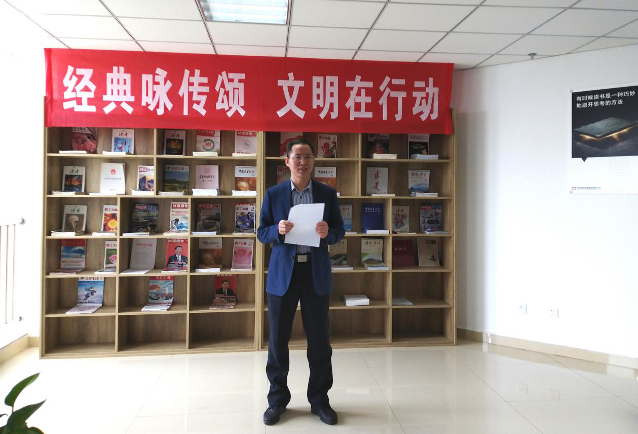 祝傳隨為讀書交流會致辭并提出要求和期望。他強調(diào),讀書是中華民族幾千年的優(yōu)良傳統(tǒng),讀書可以豐富我們的知識,陶冶我們的情操,啟迪我們的智慧。全民讀書能使中華文化煥發(fā)出更基本、更深沉、更持久的力量。希望小組辦公室能以本次讀書交流會作為開端,多在公司系統(tǒng)內(nèi)開展豐富多彩的讀書主題活動,教育引導(dǎo)廣大“多讀書、讀好書、會讀書”,提升員工文化素質(zhì)水平,建設(shè)學習型企業(yè)。他希望,公司文明單位創(chuàng)建和企業(yè)文化建設(shè)辦公室和各部室要加強交流、密切合作,繼續(xù)策劃開展好各類誦讀活動,不斷弘揚中華優(yōu)秀傳統(tǒng)文化、弘揚社會主義核心價值觀,營造濃厚的讀書和學習氛圍,建設(shè)具有凝聚力、向心力和創(chuàng)造力的企業(yè)文化,為公司實現(xiàn)高質(zhì)量發(fā)展提供強大動力支持。