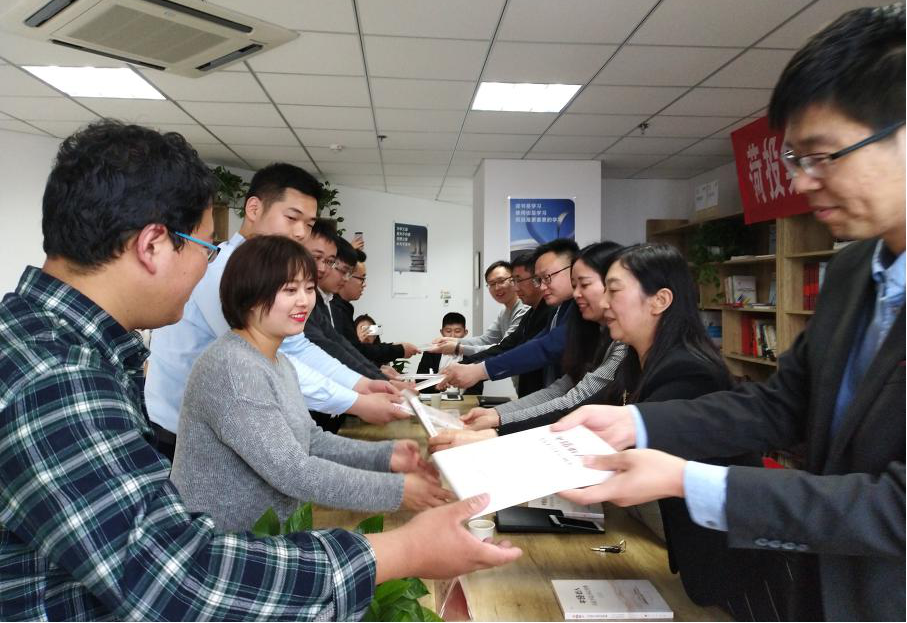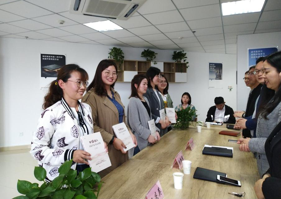 交流分享結(jié)束后,與會領(lǐng)導(dǎo)為參與交流分享的11位員工發(fā)放了《平“語”近人-習近平總書記用典》一書,鼓勵大家以本次讀書交流活動為契機,深入學習中華優(yōu)秀傳統(tǒng)文化和習近平新時代中國特色社會主義思想,用傳統(tǒng)經(jīng)典文化和新思想、新理論武裝頭腦、指導(dǎo)工作。