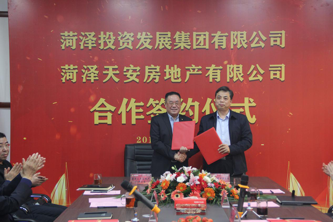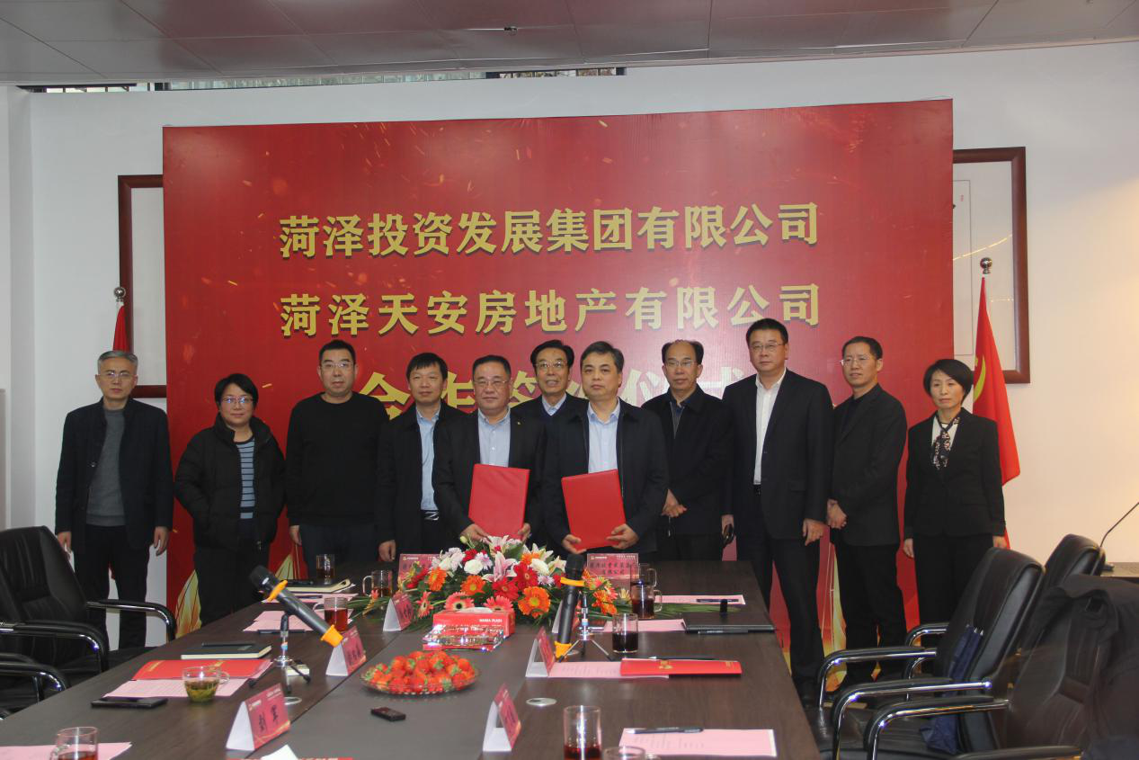 2019年12月30日下午,菏澤投資發(fā)展集團(tuán)有限公司與山東天安房地產(chǎn)有限公司在天安房地產(chǎn)公司黨建會(huì)議室就萬(wàn)達(dá)廣場(chǎng)合作項(xiàng)目簽署合作框架協(xié)議。菏投集團(tuán)黨委書(shū)記、董事長(zhǎng)徐文芹,菏投集團(tuán)黨委副書(shū)記、董事、總經(jīng)理丁萬(wàn)國(guó),山東天安建信集團(tuán)董事長(zhǎng)兼總經(jīng)理劉紹海,山東天安建信集團(tuán)執(zhí)行總經(jīng)理劉軍,各銀行機(jī)構(gòu)負(fù)責(zé)人等出席本次簽約儀式。