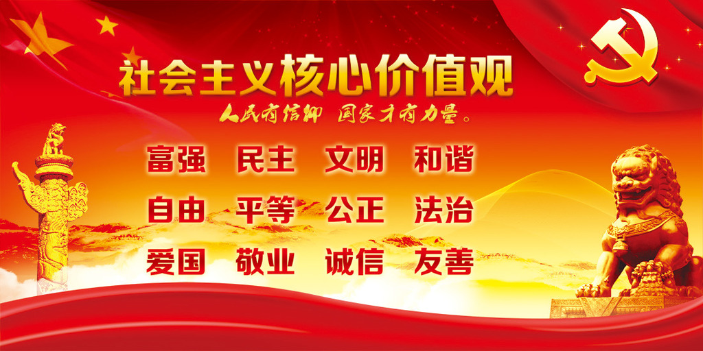 “富強(qiáng)、民主、文明、和諧”是社會(huì)主義核心價(jià)值觀的國家層面,是我國社會(huì)主義現(xiàn)代化國家的建設(shè)目標(biāo)。“自由、平等、公正、法治” ,是對(duì)美好社會(huì)的生動(dòng)表述,也是從社會(huì)層面對(duì)社會(huì)主義核心價(jià)值觀基本理念的凝練。“愛國、敬業(yè)、誠信、友善 ”,是公民基本道德規(guī)范,是從個(gè)人層面對(duì)社會(huì)主義核心價(jià)值觀基本理念的凝練。
