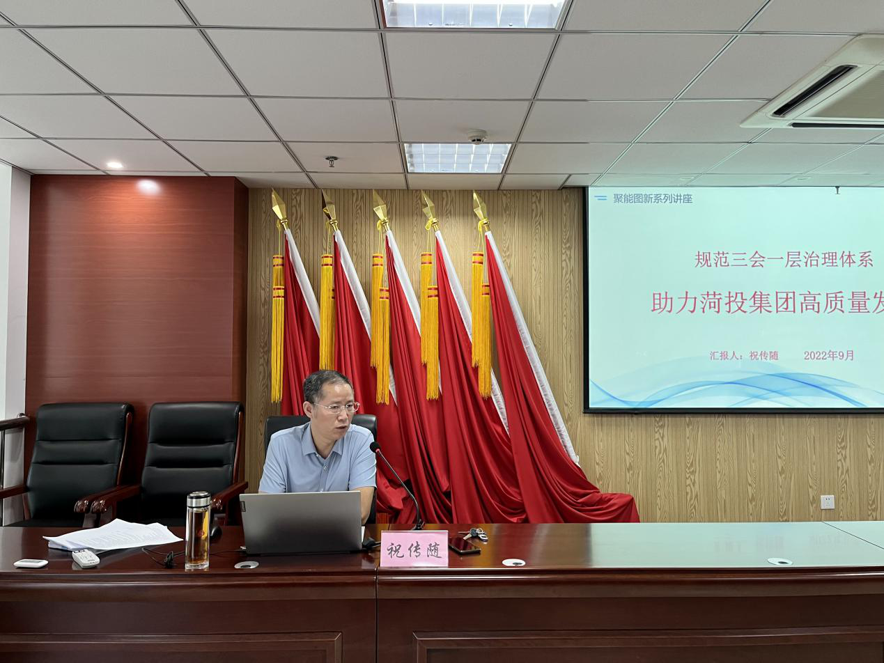 9月17日,菏投集團(tuán)干部職工“聚能圖新”系列培訓(xùn)第五講在公司第六會(huì)議室舉行。公司黨委委員、副總經(jīng)理祝傳隨圍繞“規(guī)范三會(huì)一層治理體系 助推公司高質(zhì)量發(fā)展”開展專題培訓(xùn)。