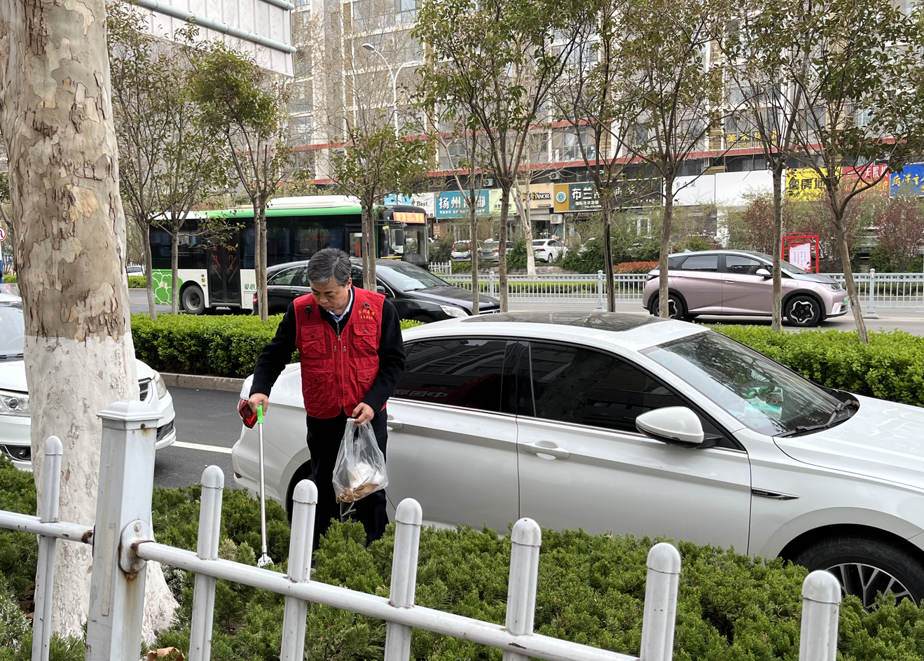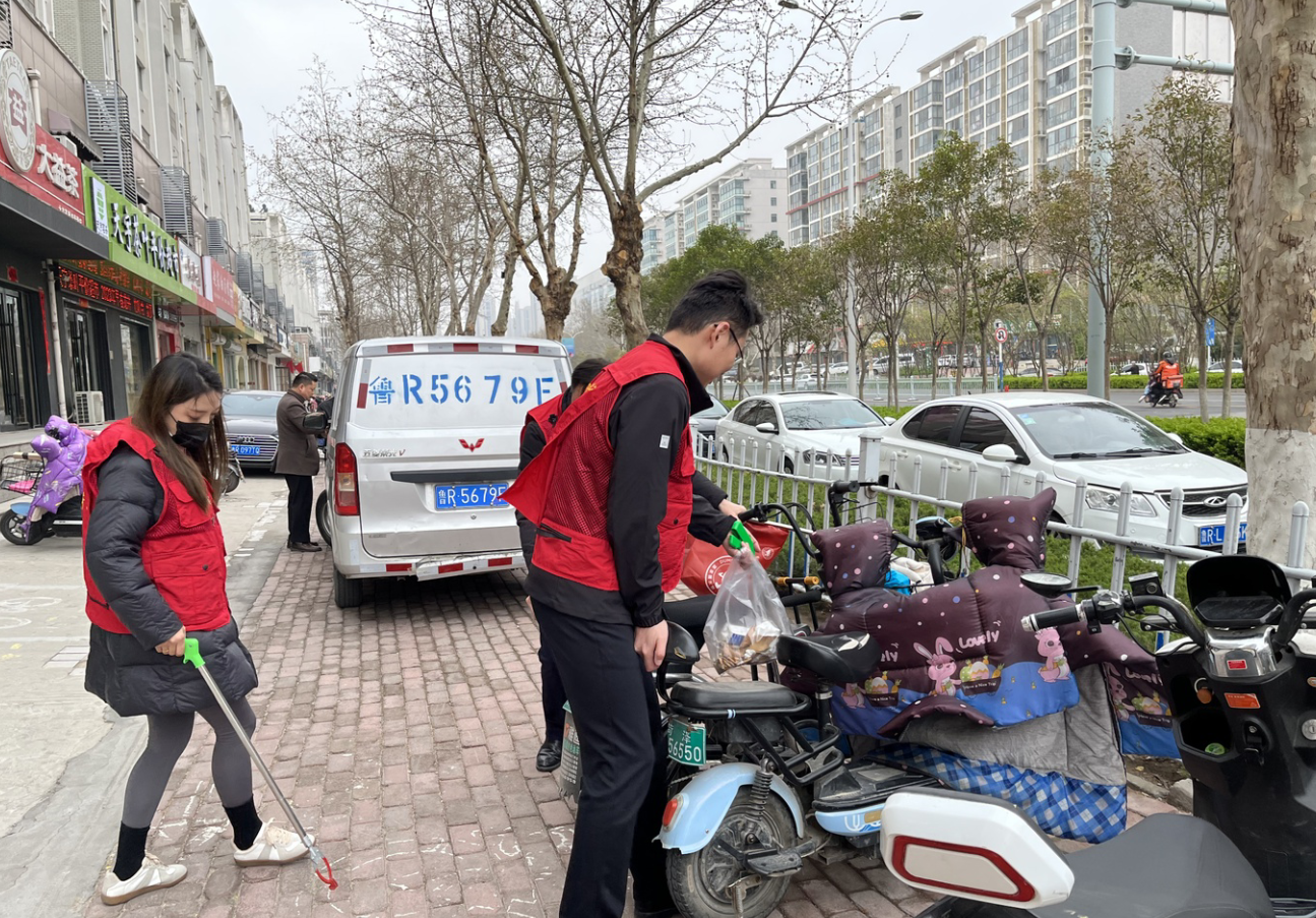 丁萬國與志愿者一同來到包聯(lián)小區(qū)帝都花園沿街路段,穿上志愿服,拿著垃圾鉗、環(huán)保袋等工具,沿著小區(qū)街巷清理公共區(qū)域、綠化帶等衛(wèi)生死角垃圾,規(guī)整非機動車擺放。