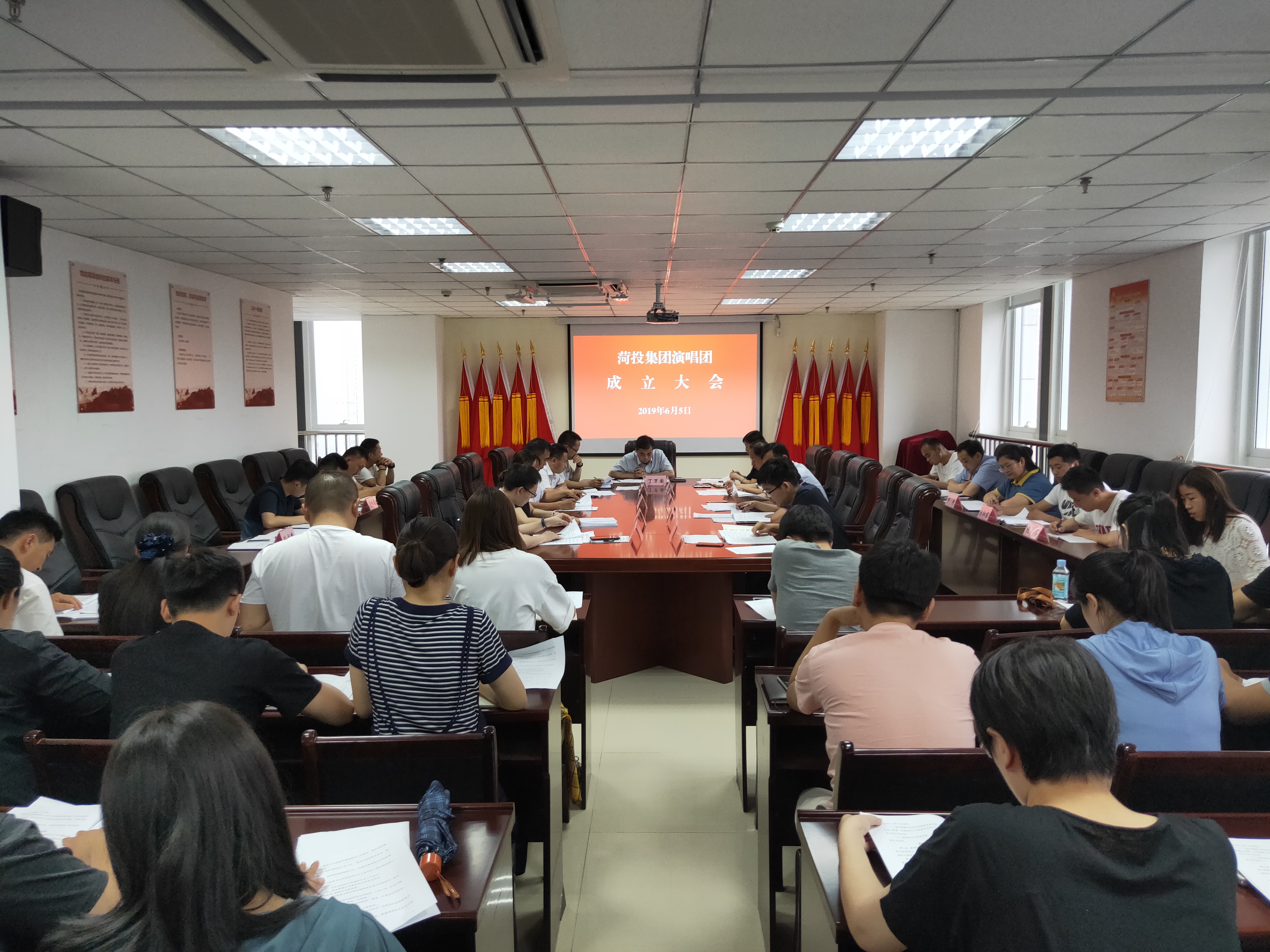 為慶祝新中國(guó)成立70周年,堅(jiān)持以習(xí)近平新時(shí)代中國(guó)特色社會(huì)主義思想和黨的十九大精神為指導(dǎo),推動(dòng)中華優(yōu)秀傳統(tǒng)文化創(chuàng)造性轉(zhuǎn)化、創(chuàng)新性發(fā)展,不斷加強(qiáng)意識(shí)形態(tài)建設(shè)和精神文明建設(shè),發(fā)展繁榮菏投集團(tuán)企業(yè)文化,6月5日下午,在公司第二會(huì)議室召開菏投集團(tuán)演唱團(tuán)成立大會(huì),公司黨委副書記、總經(jīng)理、演唱團(tuán)名譽(yù)團(tuán)長(zhǎng)(兼))丁萬(wàn)國(guó)主持會(huì)議并講話。演唱團(tuán)組織領(lǐng)導(dǎo)班子全體人員,各企業(yè)分管負(fù)責(zé)人、聯(lián)絡(luò)協(xié)調(diào)員,演唱團(tuán)全體成員參加了會(huì)議。