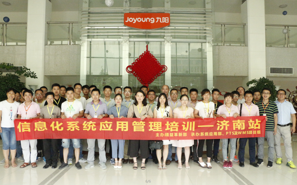 7月14日,華澤公司產(chǎn)品事業(yè)部相關(guān)人員到九陽(yáng)濟(jì)南工廠參加了信息化系統(tǒng)應(yīng)用管理培訓(xùn),重點(diǎn)學(xué)習(xí)了PTS系統(tǒng)運(yùn)維、制程管理可視化應(yīng)用和倉(cāng)儲(chǔ)管理可視化操作等內(nèi)容,并就推進(jìn)信息化系統(tǒng)應(yīng)用、5S精益管理以及可視化管理等方面與九陽(yáng)相關(guān)人員進(jìn)行了深入交流。通過(guò)學(xué)習(xí)、借鑒九陽(yáng)公司先進(jìn)的管理理念和管理經(jīng)驗(yàn),為華澤公司進(jìn)一步推進(jìn)現(xiàn)代化企業(yè)管理打下了基礎(chǔ)。