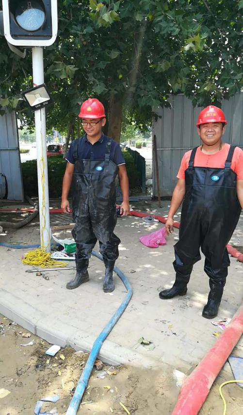 在開(kāi)挖管溝尋找熱力主管道過(guò)程中,因污水管道陳舊破損,導(dǎo)致污水管道大量漏水。面對(duì)突發(fā)事件,現(xiàn)場(chǎng)施工人員按照預(yù)案積極降水,為避免引起塌方,施工人員頂著酷暑、忍著惡臭,親自下坑堵漏,并按照規(guī)范要求完成管溝回填,保證了下一步工程按計(jì)劃開(kāi)展,確保居民冬季正常供暖。