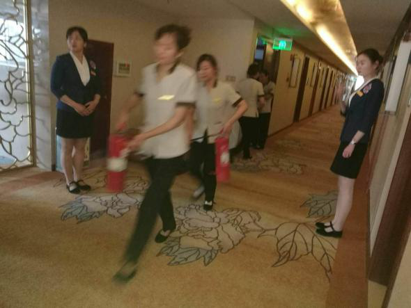 理論培訓(xùn)結(jié)束后,酒店餐飲部、前廳部、房務(wù)部按照消防演習(xí)方案各自進(jìn)行了火災(zāi)報(bào)警、初起火災(zāi)撲救、人員應(yīng)急疏散模擬演習(xí),酒店員工統(tǒng)一參加酒店的滅火實(shí)戰(zhàn)演練。