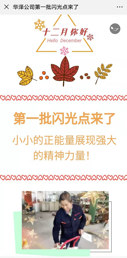 華澤公司第一期發(fā)布了19個人的閃光點,拍攝了照片在宣傳欄張貼,制作了微信小程序在微信群發(fā)布,宣傳活動調(diào)動了員工參與的積極性,將吸引更多員工的參與。