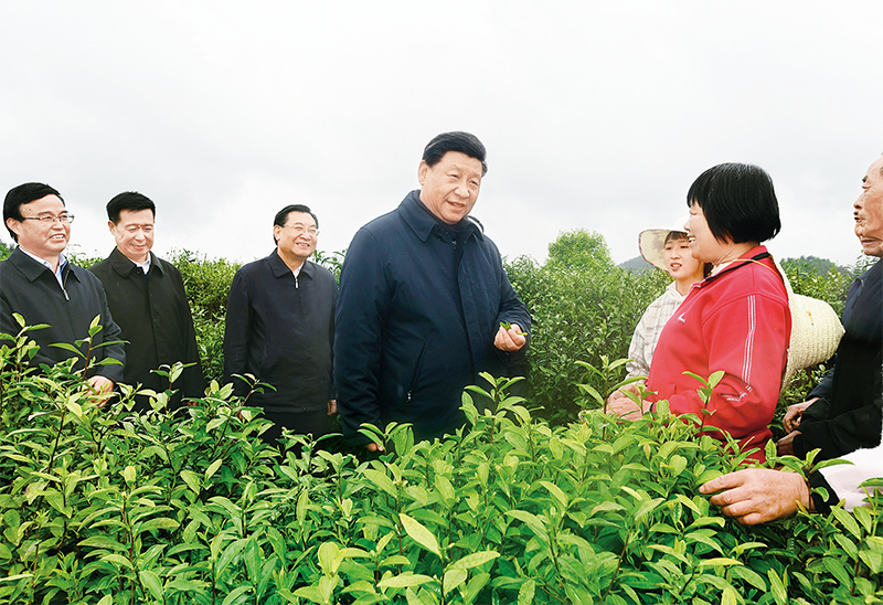 2020年4月20日至23日,中共中央總書記、國家主席、中央軍委主席習近平在陜西考察。這是4月21日,習近平在安康市平利縣老縣鎮(zhèn)蔣家坪村女媧鳳凰茶業(yè)現(xiàn)代示范園區(qū),同茶農們親切交談。