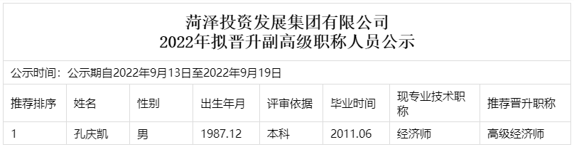 菏澤投資發(fā)展集團(tuán)有限公司2022年擬晉升副高級(jí)職稱人員公示