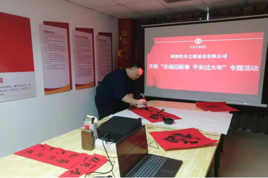開展“送福迎新春,平安過大年”專題活動。2月7日,公司組織書法愛好者員工開展了“送福迎新春,平安過大年”專題活動,書法愛好者現(xiàn)場揮毫潑墨,一個個美好溫暖的“?!弊郑桓备庇榧{福的春聯(lián),散發(fā)著濃濃墨香,寄寓著對龍年春節(jié)的期盼、對美好生活的憧憬,隨后,公司將寫好的“?!弊趾途闹谱鞯摹洞汗?jié)期間安全工作溫馨提示》,逐一送到了各承租單位,向他們致以新春的祝福。同時,提醒他們做好春節(jié)期間消防安全、生產(chǎn)安全、人員安全、食品安全,確保節(jié)日期間的安全穩(wěn)定。